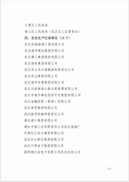 2月23日,武漢市安委會(huì)印發(fā)了“”2022年度全市安全生產(chǎn)工作考核情況的通報(bào)”,武漢交投高速公路運(yùn)營管理有限公司榮獲“安全生產(chǎn)紅旗單位”。