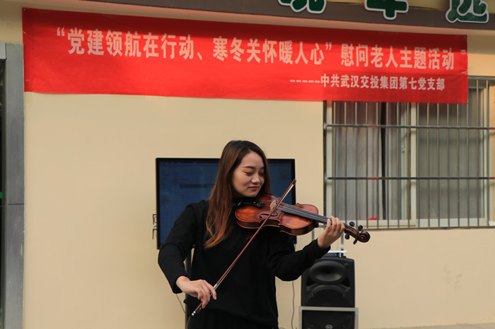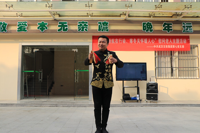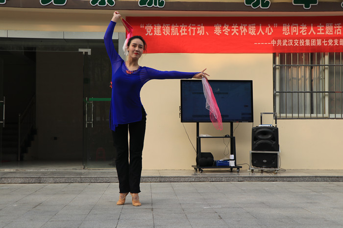 第七黨支部書記沈海濤首先為活動(dòng)致辭,表達(dá)了武漢交投集團(tuán)第七黨支部對(duì)老人們的親切慰問(wèn),并祝福老人們度過(guò)一個(gè)幸福的晚年。九點(diǎn)整,由交投員工及員工家屬組成的四環(huán)文藝小分隊(duì)為敬老院的老人們傾情上演了一臺(tái)自編自導(dǎo)的文藝演出,獨(dú)唱、舞蹈、戲曲、快板、器樂(lè)演奏……豐富多彩的節(jié)目輪番上演,充分展示了交投青年多才多藝的精神風(fēng)貌和良好的企業(yè)形象。