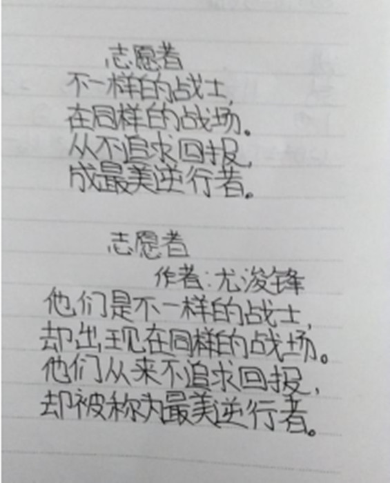 10歲小侄孫寫的小詩給予汪幫平強(qiáng)大精神力量