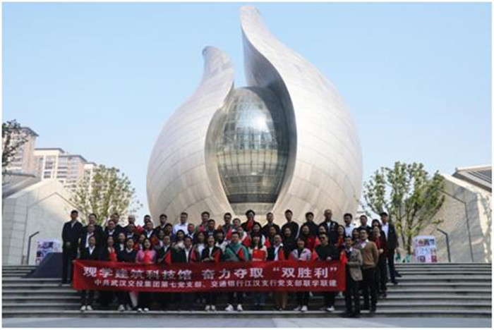 為進(jìn)一步加深銀企合作,聯(lián)學(xué)聯(lián)建,11月7日,交投集團(tuán)第七黨支部攜手交通銀行江漢支行黨支部共同走進(jìn)中國(guó)建筑科技館,開展以“觀學(xué)建筑科技館、奮力奪取雙勝利”為主題的教育活動(dòng)。交投集團(tuán)總經(jīng)理助理、東、西四環(huán)公司總經(jīng)理王先強(qiáng)、第七黨支部書記沈海濤、交通銀行江漢支行黨支部書記陳曼及全體黨員干部職工參加活動(dòng)。