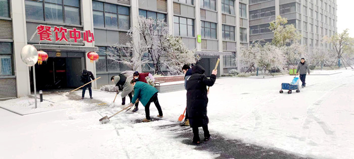 為積極應(yīng)對武漢低溫雨雪冰凍天氣,保障柴泊湖武漢康養(yǎng)中心及周邊道路的安全暢通,連日來,康養(yǎng)中心組織全體員工,堅(jiān)守一線,以雪為令、聞雪而動,采取多種舉措除冰雪、保安全,全力以赴開展清雪作業(yè),為入住長者提供安全舒適的居住環(huán)境。