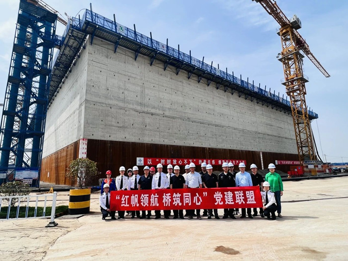 全體黨員先后參觀了漢南長江大橋南岸錨錠及主塔施工現(xiàn)場,項(xiàng)目負(fù)責(zé)人詳細(xì)介紹了項(xiàng)目概況、施工進(jìn)展、關(guān)鍵技術(shù)、現(xiàn)場管控重難點(diǎn)以及下一步施工計(jì)劃。各家單位就項(xiàng)目建設(shè)期間的水上交通安全監(jiān)管日常聯(lián)動(dòng)協(xié)作、強(qiáng)化源頭管理與現(xiàn)場監(jiān)管協(xié)同配合、安全保障、應(yīng)急響應(yīng)等具體工作任務(wù)達(dá)成了一致。