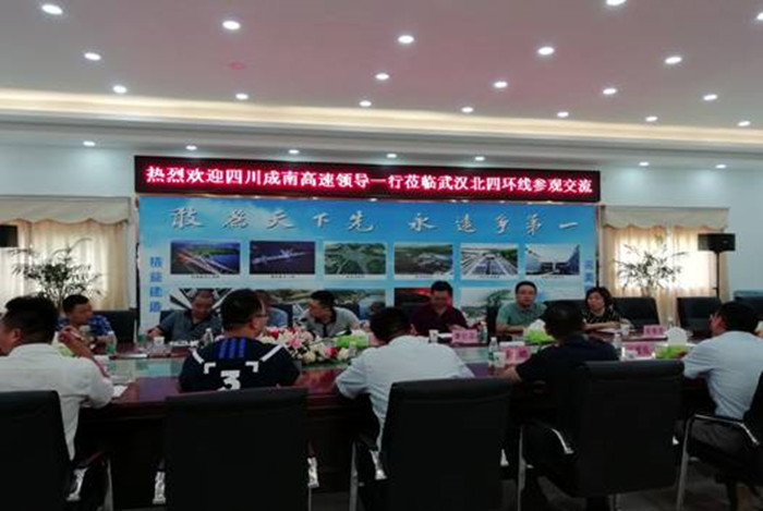 7月20日,四川成南高速公路有限責(zé)任公司總經(jīng)理蘇開春、副總經(jīng)理廖壯志一行八人來到武漢交投集團(tuán)北四環(huán)項目參觀交流。武漢交投集團(tuán)總工程師、北四環(huán)公司總經(jīng)理王愛民,交投集團(tuán)第五黨支部書記余皓陪同參觀。
