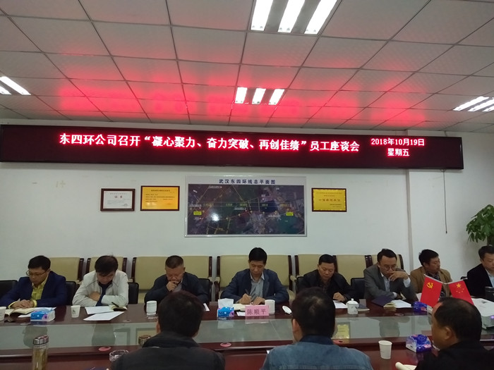 為進(jìn)一步了解員工思想動態(tài)和工作狀態(tài),踐行交投集團(tuán)“家文化”理念,加強東四環(huán)團(tuán)隊建設(shè),2018年10月19日上午,東四環(huán)公司組織召開了“凝心聚力、全面突破、再創(chuàng)佳績”員工座談會,交投集團(tuán)總經(jīng)理陳順平認(rèn)真聽取了員工的意見和建議。交投集團(tuán)總經(jīng)理助理、東四環(huán)公司總經(jīng)理王先強及全體員工參加了本次座談會,東四環(huán)公司總監(jiān)汪幫平主持會議。