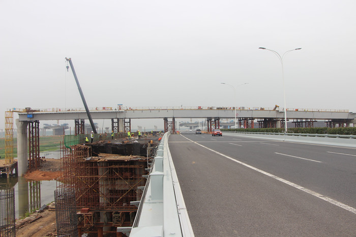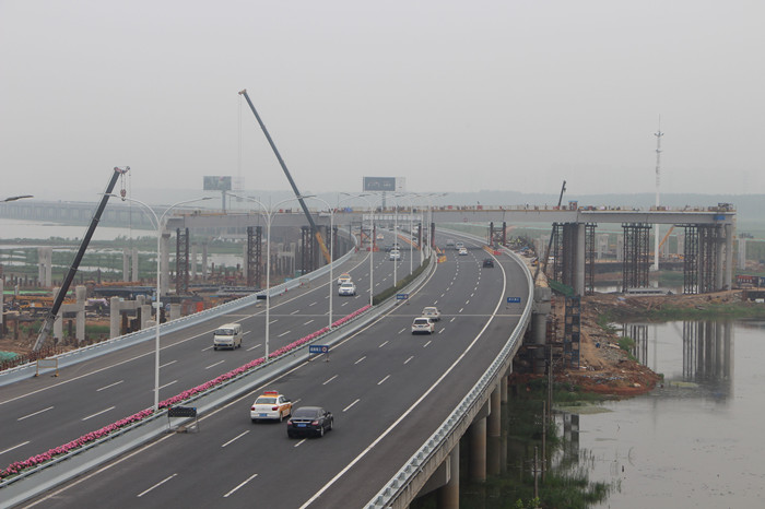 此次鋼箱梁吊裝的全部完成,對于保障武漢軍運會重點線路暢通具有重要意義。本次吊裝過程中跨60m鋼箱梁上跨武漢天河機場二通道墨家湖特大橋。該橋面寬約32米,車流量大,由于涉及到軍運會重點保障線路,按時保質保量的完成施工任務成為重中之重。為全面推進工程建設,自4月份以來,武漢交投集團北四環(huán)公司組織全體參建單位一方面倒排工期,建立“5+2”“白加黑”工作機制,現場24小時輪班連續(xù)作業(yè),推進工程建設;另一方面,進一步優(yōu)化施工方案,對工序銜接進行周密部署,夜間抓緊組織鋼箱梁進場,白天則在交警配合下搶抓吊裝,有效提升了現場施工效率。