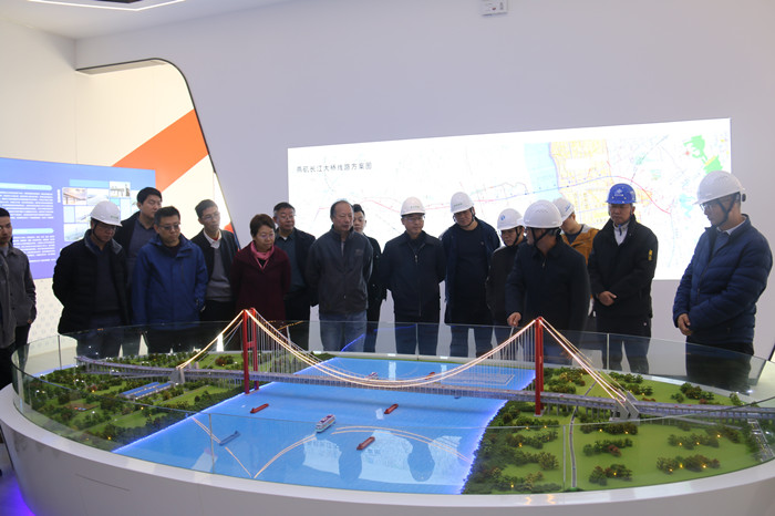 為進(jìn)一步學(xué)習(xí)大跨懸索橋主塔超厚高標(biāo)號(hào)混凝土施工、主塔鋼筋部榀化及筑塔機(jī)施工、錨碇大體積混凝土施工等方面的先進(jìn)經(jīng)驗(yàn),11月14日,武漢交投集團(tuán)副總經(jīng)理鄭群華帶領(lǐng)漢南長(zhǎng)江大橋項(xiàng)目公司及設(shè)計(jì)、施工單位代表到湖北交投集團(tuán)燕磯長(zhǎng)江大橋中鐵大橋局項(xiàng)目部進(jìn)行交流學(xué)習(xí)。