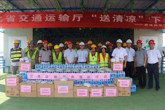 7月23日下午,湖北省交通運(yùn)輸廳二級(jí)巡視員阮云旻一行來到武漢交投集團(tuán)北四環(huán)5-1標(biāo)項(xiàng)目現(xiàn)場開展“送清涼”活動(dòng),在炎炎夏日中,為現(xiàn)場一線施工人員帶來了絲絲涼意。