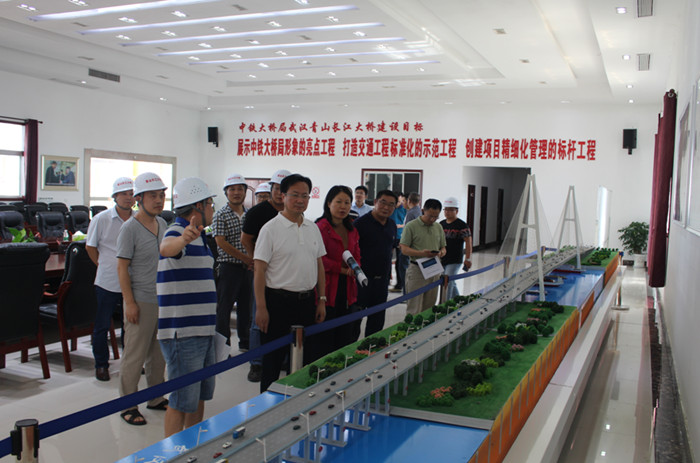 2018年7月25日下午,武漢市發(fā)改委主任許甫林一行深入交投集團青山長江大橋施工現(xiàn)場,調(diào)研項目建設(shè)情況,市交委副主任賀敏、交投集團青山橋項目負責人付曉鵬陪同調(diào)研。