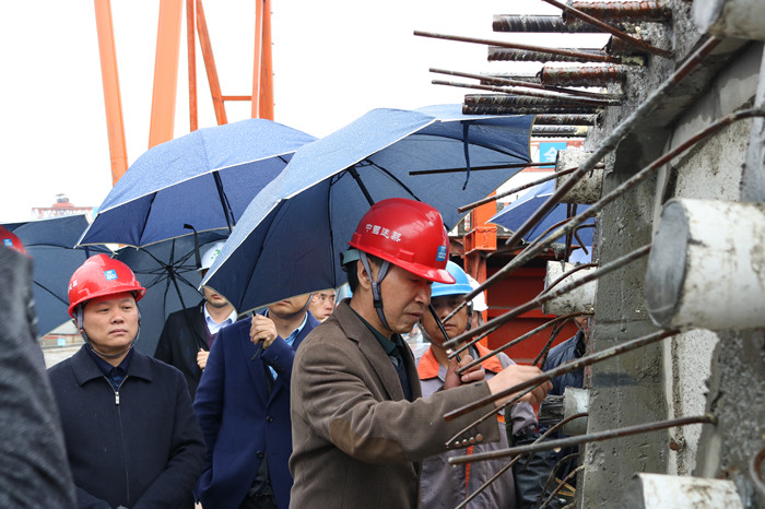 為切實增強做好安全生產(chǎn)工作的緊迫感責任感,清醒認識當前安全生產(chǎn)面臨的形勢,進一步加強新形勢下安全生產(chǎn)工作各項措施的落實,4月2日,交通運輸部黨組成員兼總規(guī)劃師、綜合規(guī)劃司司長王志清率部安全專項檢查組一行冒雨來到武漢交投集團北四環(huán)線檢查督導安全生產(chǎn)工作。湖北省交通運輸廳安監(jiān)處處長李裕民、廳質(zhì)監(jiān)局局長章征春、武漢交投集團總經(jīng)理陳順平、集團總工程師、北四環(huán)公司總經(jīng)理王愛民陪同檢查。