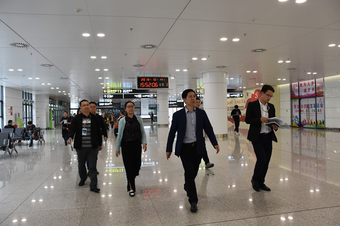 陳順平一行實地察看了天河機場交通中心旅客集散大廳、商務(wù)會議中心、社會停車場等,他指出,作為華中地區(qū)首個綠色換乘綜合中心,天河機場交通中心承擔著航空、城際鐵路、地鐵、公路長途、公交、出租車、社會車輛等7種交通方式的無縫立體換乘的樞紐功能,在軍運會期間肩負著迎來送往的服務(wù)保障任務(wù),是讓國內(nèi)外旅客感受武漢城市“微笑”、觸摸武漢城市“溫度”的重要窗口。他要求,交投集團天河機場交通中心項目全體員工進一步提高政治站位,統(tǒng)一思想,充分運用“不忘初心,牢記使命”主題教育成果,扎實開展各項工作;進一步嚴格落實責任分工,協(xié)調(diào)聯(lián)動,合力加大排查力度,確保各項工作萬無一失;進一步加強應(yīng)急、安保能力建設(shè),組織開展培訓演練,深入開展服務(wù)保障人員業(yè)務(wù)培訓,確保服務(wù)熱情高效,高質(zhì)量完成軍運會期間各項工作任務(wù)。