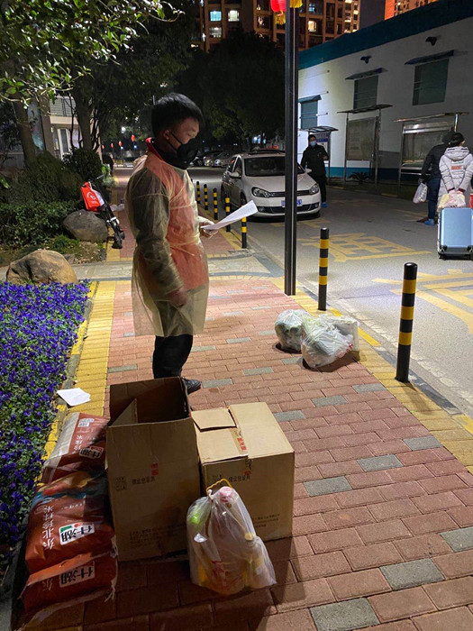 夜已深,陳超仍堅守崗位,為居民送去生活物資