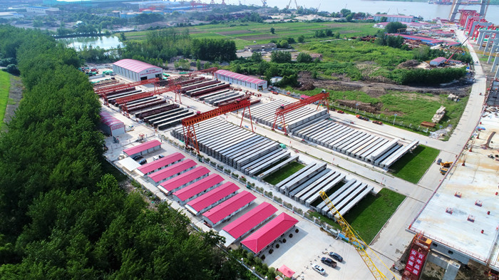 2018年7月,中國施工企業(yè)管理協(xié)會在青山橋南岸預(yù)制梁場舉辦“綠色建造、綠色發(fā)展”觀摩交流會,全國 200 余名綠色環(huán)保工程專家齊聚現(xiàn)場。53畝的標(biāo)準(zhǔn)化T梁預(yù)制場布置有制梁區(qū)、存梁區(qū)、封閉式鋼筋加工車間、辦公及生活區(qū)四大核心區(qū),大面積草坪和植被環(huán)繞,整潔美觀、自然和諧。梁場進(jìn)出口設(shè)置的車輛自動沖洗裝置,有效抑制施工現(xiàn)場揚(yáng)塵。水泥、粉煤灰等粉粒性原材料全部使用專用車輛運(yùn)輸;各類臨時(shí)設(shè)施均采用標(biāo)準(zhǔn)化、可拆遷、可回收材料,減少資源浪費(fèi)。基坑開挖采用鋼板樁圍堰,減少土方開挖和回填量,保護(hù)用地。大體積混凝土采用冷卻水管循環(huán)水,預(yù)制 T 梁全自動循環(huán)水噴養(yǎng)護(hù);梁場隨處可見的太陽能路燈、空氣能熱水器等清潔能源;用多層鋼骨架活動板房建設(shè)的臨時(shí)辦公和生活用房,處處踐行節(jié)能環(huán)保。