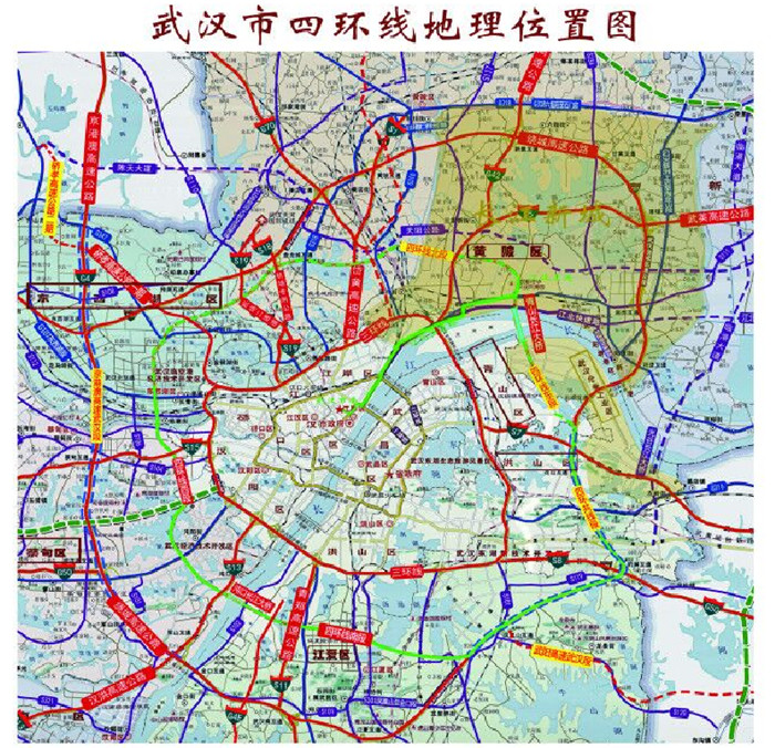四環(huán)線位于武漢市三環(huán)線和繞城高速公路之間,線路全長(zhǎng)148公里,采用雙向八車(chē)道高速公路標(biāo)準(zhǔn)建設(shè),設(shè)計(jì)時(shí)速100公里,是以貨運(yùn)為主,客運(yùn)為輔,連接武漢市六大新城組群的快速通道,是武漢市“環(huán)形+放射”的道路骨架網(wǎng)絡(luò)的有機(jī)組成部分。
