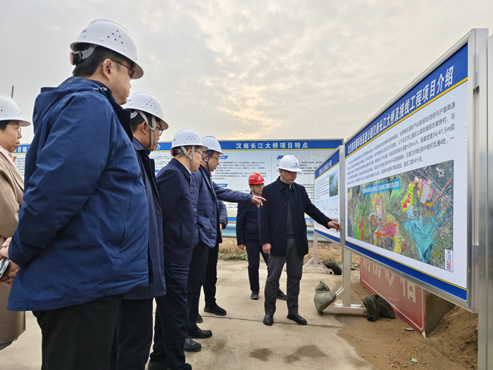 雷鳴一行先后參觀了武漢至松滋高速公路武漢段水紅樞紐互通施工現(xiàn)場(chǎng)、武漢都市圈環(huán)線高速公路漢南長(zhǎng)江大橋及接線工程北岸錨錠施工現(xiàn)場(chǎng),漢南橋、武松項(xiàng)目公司總經(jīng)理林文結(jié)合兩大項(xiàng)目2024年的建設(shè)進(jìn)展情況、“平安百年品質(zhì)工程”創(chuàng)建情況、近階段路域環(huán)境整治情況、春節(jié)前后工作安排情況、2025年生產(chǎn)計(jì)劃及相關(guān)保障措施情況等方面進(jìn)行詳細(xì)匯報(bào)。