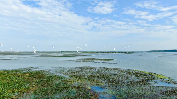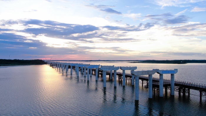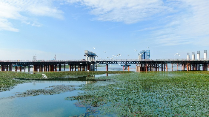 如今,當(dāng)全長(zhǎng)8300余米的斧頭湖一號(hào)鋼棧橋如鋼鐵長(zhǎng)龍橫臥水面,其映照的不僅是建設(shè)者的汗水,更是生態(tài)優(yōu)先的答卷。鋼棧橋及主體工程施工期間,斧頭湖作業(yè)區(qū)水質(zhì)監(jiān)測(cè)數(shù)據(jù)持續(xù)優(yōu)良,周邊濕地未受侵?jǐn)_。正是這份對(duì)自然的敬畏,引來(lái)了白鷺的棲息。它們掠過(guò)工地林立的樁基,停駐在防護(hù)網(wǎng)外的淺灘,儼然成為生態(tài)成效的“第三方認(rèn)證”——工業(yè)巨人以謙卑姿態(tài)與自然對(duì)話,終獲生靈信任。