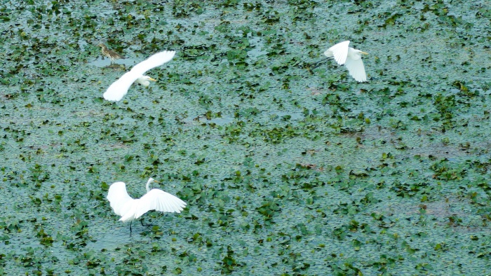 九月的斧頭湖,水光瀲滟,藍(lán)天白云。由武漢城發(fā)集團(tuán)所屬交投集團(tuán)投資建設(shè)的武漢都市圈環(huán)線漢南長(zhǎng)江大橋及接線工程斧頭湖一號(hào)高架橋工地旁,成群白鷺翩然舞動(dòng)在水面:它們時(shí)而掠過(guò)鋼棧橋與墩體,時(shí)而棲息于橋邊水草,潔白的羽翼倒映在碧波之上,構(gòu)筑了一幅工業(yè)文明與自然生態(tài)和諧共生的生動(dòng)圖景。這并非偶然的風(fēng)景,而是項(xiàng)目團(tuán)隊(duì)踐行生態(tài)承諾的無(wú)聲勛章。